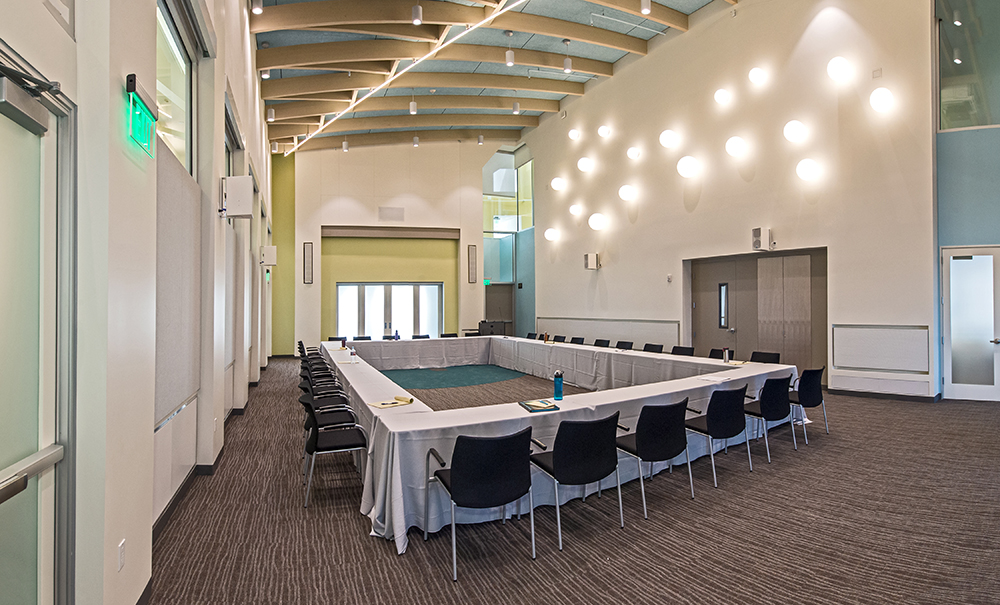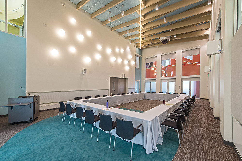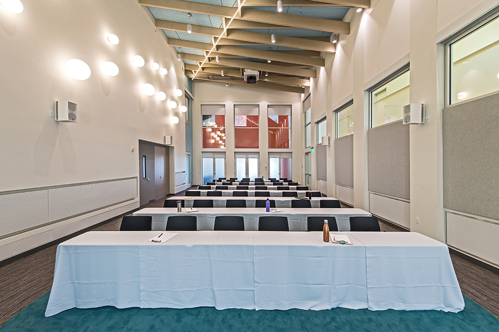 1,300-square-foot enclosed multi-purpose space Lectern w/ a laptop (PC), HDMI & VGA input Projector & 159” screen 5.1 surround sound Microphones: 4 wireless handheld, 2 wireless lapel, 6 wired Rate 4 Hours or Less Add'l Hour Setup Fee Audio Visual / Day Non-Member $450 $85 $175-350 $100-250 Member $355 $70 $175-350 $100-250 Rates are subject to change. A 5% Coordinated Services fee will be assessed for the coordination of event resources such as furniture and linen rentals. Aditional fees may apply based on event needs.