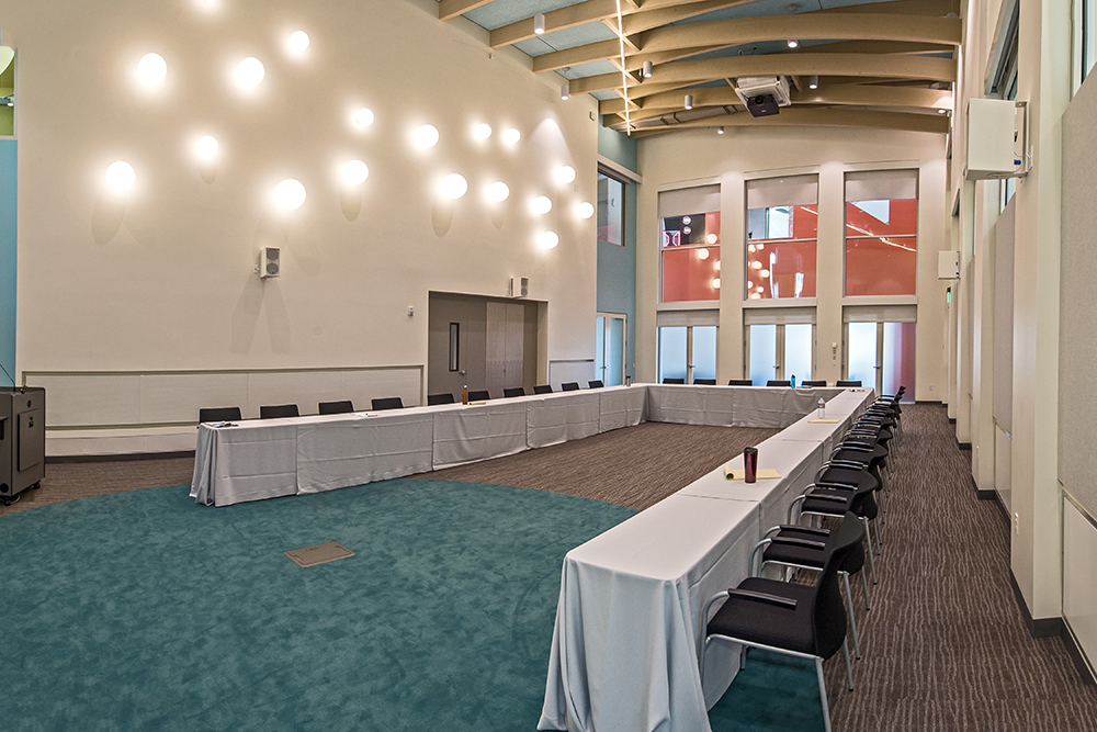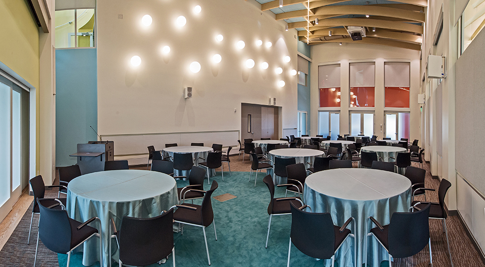 1,300-square-foot enclosed multi-purpose space Lectern w/ a laptop (PC), HDMI & VGA input Projector & 159” screen 5.1 surround sound Microphones: 4 wireless handheld, 2 wireless lapel, 6 wired Rate 4 Hours or Less Add'l Hour Setup Fee Audio Visual / Day Non-Member $450 $85 $175-350 $100-250 Member $355 $70 $175-350 $100-250 Rates are subject to change. A 5% Coordinated Services fee will be assessed for the coordination of event resources such as furniture and linen rentals. Aditional fees may apply based on event needs.