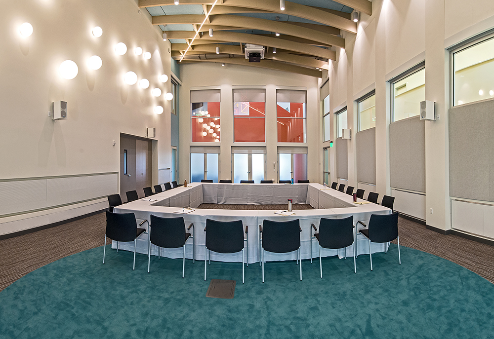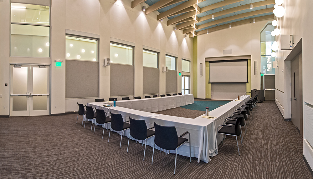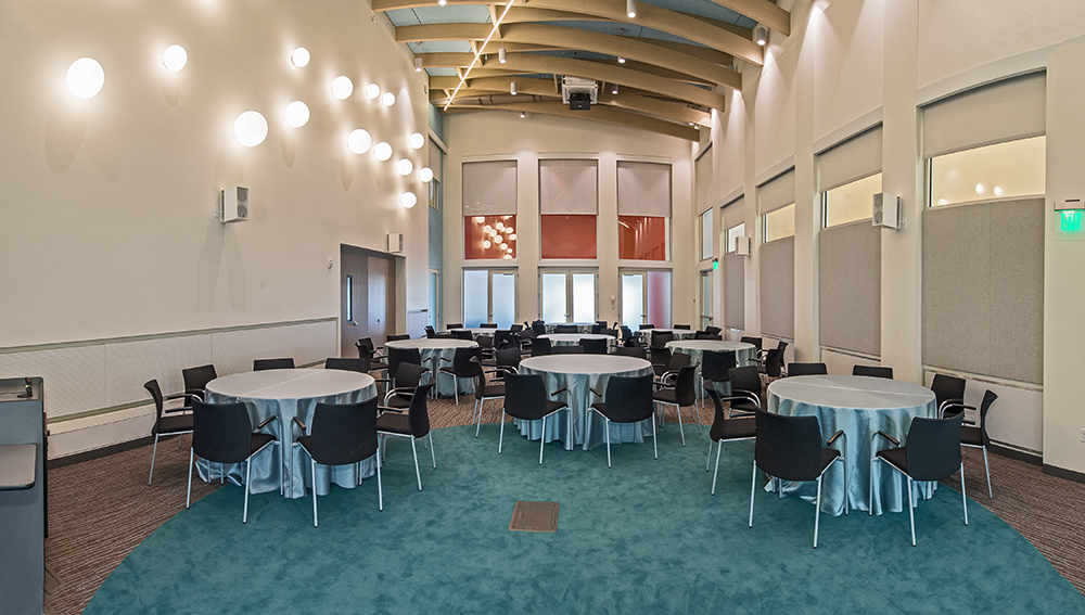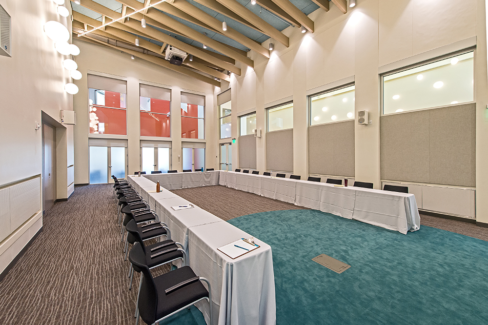 1,300-square-foot enclosed multi-purpose space Lectern w/ a laptop (PC), HDMI & VGA input Projector & 159” screen 5.1 surround sound Microphones: 4 wireless handheld, 2 wireless lapel, 6 wired Rate 4 Hours or Less Add'l Hour Setup Fee Audio Visual / Day Non-Member $450 $85 $175-350 $100-250 Member $355 $70 $175-350 $100-250 Rates are subject to change. A 5% Coordinated Services fee will be assessed for the coordination of event resources such as furniture and linen rentals. Aditional fees may apply based on event needs.